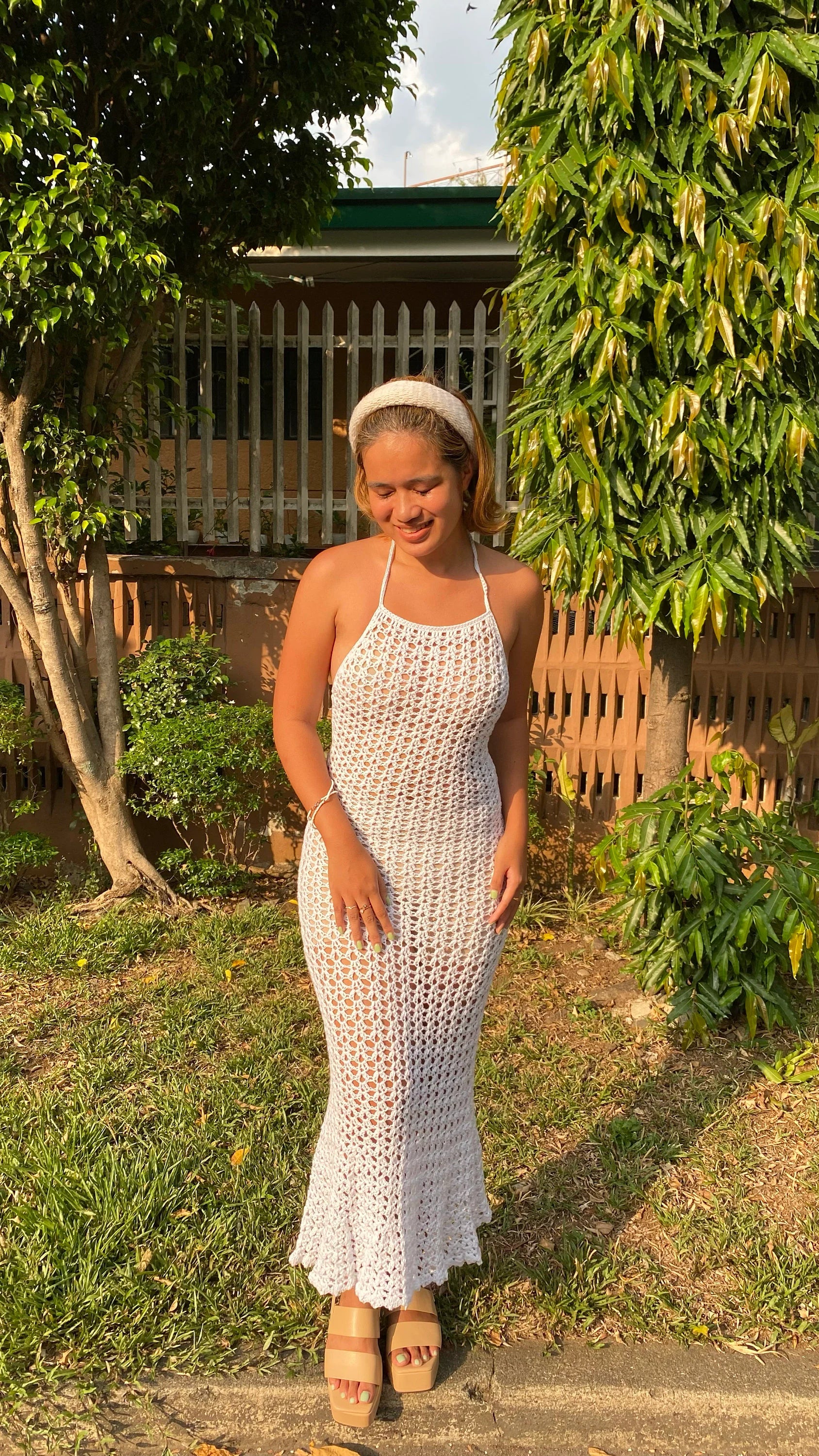 4.00mm hook or any hook that's compatible with your yarn size. (You may use a smaller hook than what's recommended for your yarn size if you want smaller holes on your dress).